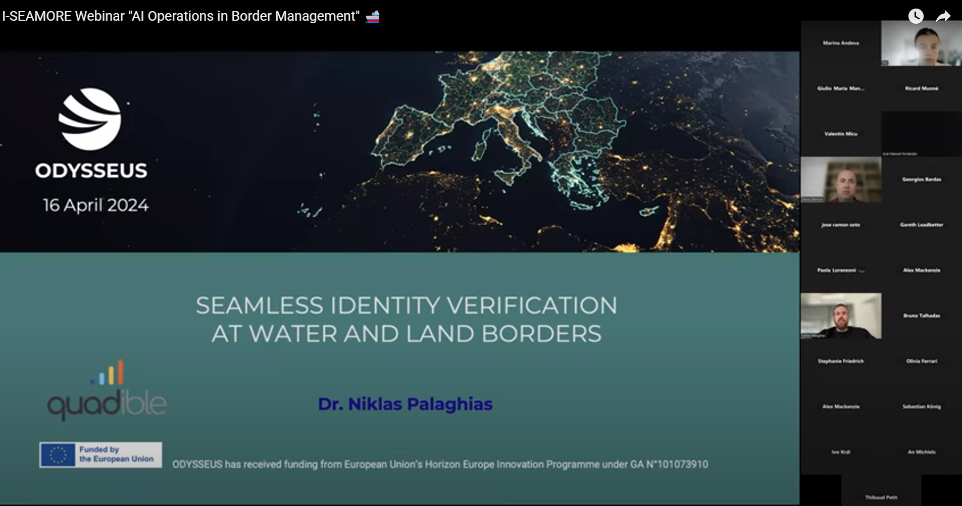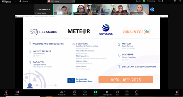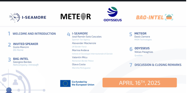 On April 16th, 2025, the ODYSSEUS project participated in the I-SEAMORE-organised webinar titled “AI Operations in Border Management”. The event drew 96 attendees, including representatives from EU institutions, agencies, and cutting-edge research initiatives. Its aim was to spotlight how artificial intelligence is transforming modern border operations – through automation, data fusion, and novel verification methods.