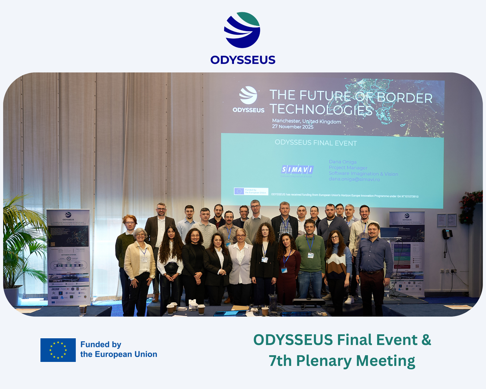 The ODYSSEUS Final Event and 7th Plenary Meeting took place on 27 November 2025 in Manchester, UK, bringing together the consortium and invited stakeholders at a key moment in the project’s lifecycle, ahead of its official conclusion at the end of 2025.